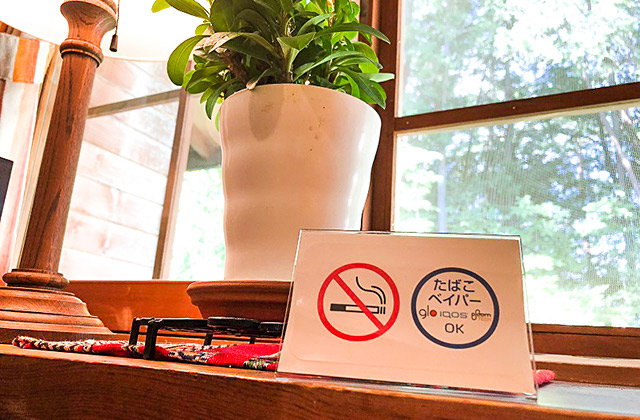 館内での喫煙は、加熱式タバコを除き禁煙となっております。加熱式タバコをお部屋でご利用される際、灰皿が必要な場合はフロントへお申し付けください。1階食堂・パブリックスペースでも加熱式タバコをご利用頂けますが、夕食・朝食時間帯は全面禁煙となっております。紙巻きタバコをご利用のお客様は、大変ご不便をお掛け致しますが外の喫煙所を ご利用下さいませ。